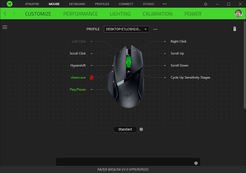 תפריט ההגדרות של Basilisk V3 X Hyperspeed ב-Synpase 3 (תמונת מסך)