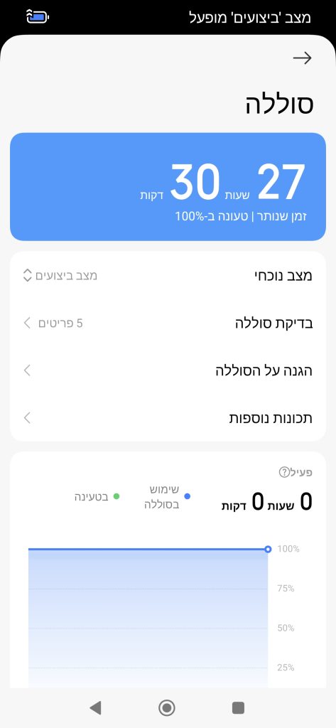 אחד הדברים שאני אוהב במערכת ההפעלה/ממשק של שאומי זה הקלות בה אפשר לבחור את מצב הביצועים של הטלפון – ממש כמו ב-PC שעובד תחת ההגדרות של Windows. זה חשוב במיוחד כמובן במחשב נייד יותר מאשר במחשב שולחני, ומה הוא טלפון חכם מודרני אם לא סוג של מחשב נייד?