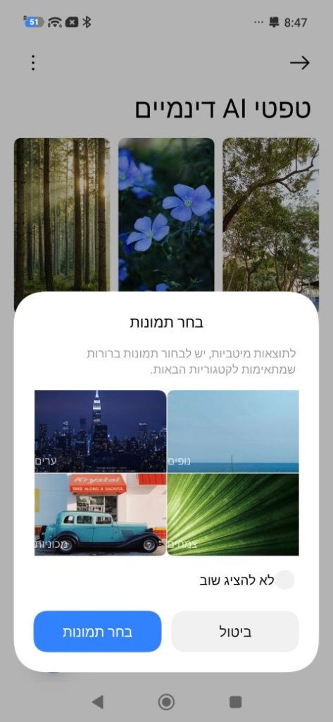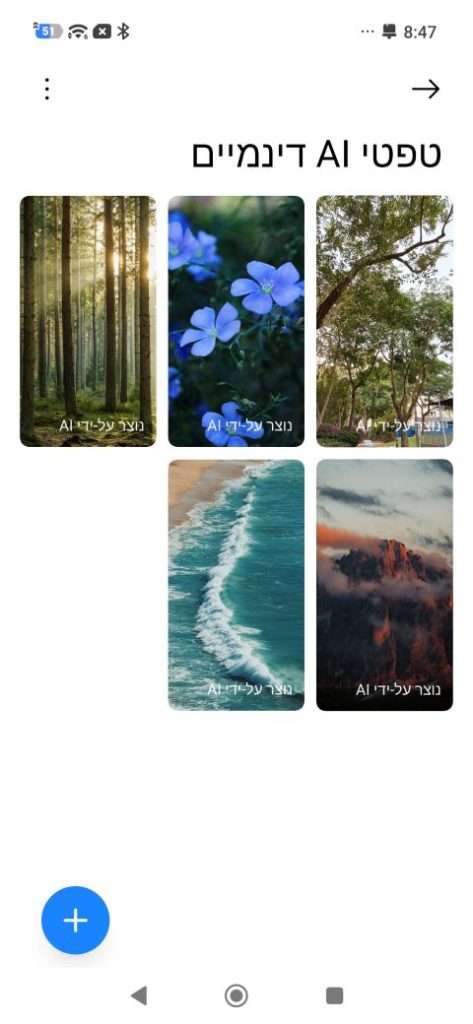תהליך היצירה לוקח כמה דקות, בתלות בעומס על השרתים של שאומי, ובסיום הטפט מצטרף לרשימה שזמינה לבחירה בטלפון – התמונה של העצים מצד ימין למעלה? היא שלי. לאחר מכן אפשר להצמיד את זה למסך הנעילה או למסך הבית, והתוצאה הסופית היא אנימציה קצרה בת 2 שניות פחות או יותר, אבל מאוד מרשימה, כמו כלי בינה מלאכותית דומים אחרים שאפשר למצוא בשוק, אבל ייעודי להכנת טפט.